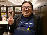 ルノアールで感想戦の岩崎マサル氏。