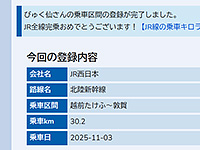 「乗りつぶしオンライン」で制覇を確認。おめでとうございますって出るのね。