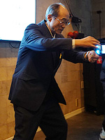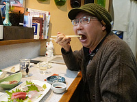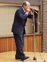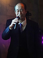 L: 手品を披露するシンカイ先生。 R: 演歌を熱唱するシンカイ先生。お元気すぎて何よりでございます。先生は来年喜寿を迎えるということで、それを祝う会が設定されたのであった。楽しみに待たせていただきます。