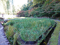 L: 菖蒲田。 C: 中心となっている龍仙湖。 R: 西側の飛び石。