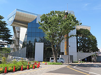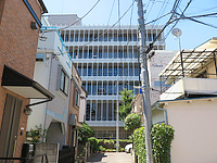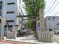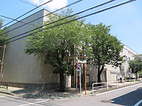 R: 南東から見たところ。よく見るとなかなかモダニズム色が濃いデザイン。ホールにプールに図書館まで入っている。南下して荏原町駅方面へ。6年ぶりに旗岡八幡神社にお参りするのだ(→2015.6.28)。過去ログでも書いているが、