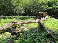 L: 林試の森公園・東門。厳密にはこちらは目黒区。 C: 台風で倒れたユーカリがそのまま保存されて自然観察樹木となっている。
