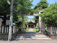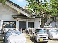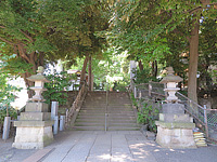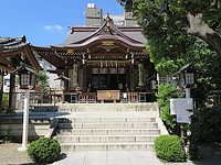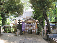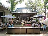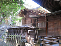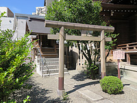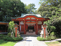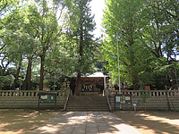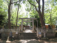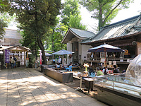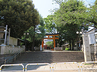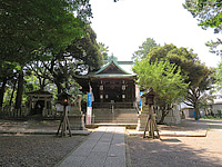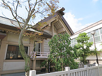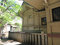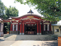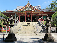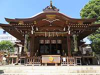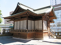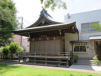 C: 鳥居をくぐるとすぐに拝殿。 R: 角度を変えて眺める。東京大空襲の被害を受け、現在の社殿は1957年の再建とのこと。