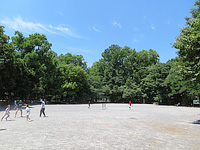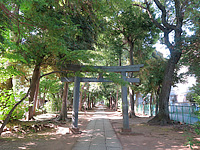 L: 出合いの広場。なんかよくわからんが、とにかく出合えるのだろう。 C: 遊具もある。 R: 運動ができる広場もある。林試の森公園を後にすると、南に戻って三谷(さんや)八幡神社に参拝する。ずいぶんとコンパクトな印象な神社だが、