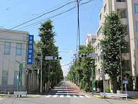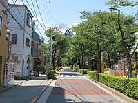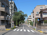 R: こちらは中原街道から北上していった通り。まっすぐ行くと小山7丁目の五叉路に出て洗足いちょう通りとなる。