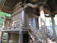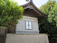 L: 角度を変えて拝殿を眺める。 C: 本殿。社殿は1938年の築。 R: 拝殿向かって左手に稲荷社。