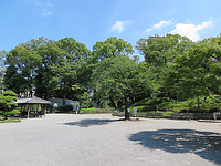 その庭園部分が1932年に荏原町に寄付されて、公園となったのだ。冠木門のある南側は裏口で、北側には正門の薬医門がある。