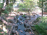 L: 林業研究発祥の地の石碑。 C,R: 園内には小川が流れ、池もある。公園の敷地はその昔、湿地だったとのこと。