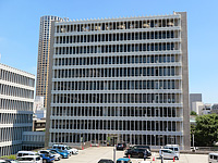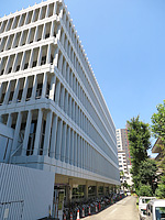 L: オオゼキ武蔵小山店がメインとなっている武蔵小山ビル。 C: 建物の北東側。こうして見ると公的施設っぽさがあるが。