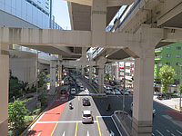 L: 第二京浜(国道1号)を挟んで東側を振り返る。 C: こちらは西側。 R: 都営浅草線戸越駅と東急池上線戸越銀座駅の間。