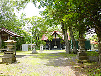 C: くぐって左手が小菅神社里宮の境内である。 R: 参道を進んでいくとこの光景。石段を上って拝殿へと向かう。