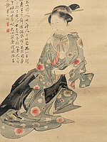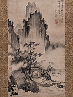 C: 滝の流れを墨の濃淡で表現。 R: 落ちていった先の複雑な流れもまた見事。岩を置くのがセンスだなあと。さて応挙といえば、足のない幽霊である。今回は長沢芦雪、山口素絢とともに並べられていたのだが、応挙はふつうに美人。