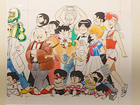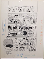 L: 奇面組グッズ。壮観である。 C: 単行本の表紙の原画。これは6巻。 R: 原稿。トーンなどシンプル。でも上手い。