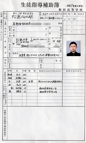 なんとわれわれが入学時に提出した生徒指導補助簿。教員をやっていなくてもわかる、超ド級の個人情報である。