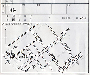 L: せっかくなので生徒指導補助簿をアップ。明らかにcirco氏の字ですなあ。 R: 裏面の自宅地図がまたcirco氏だ。