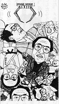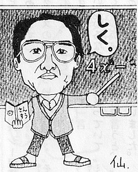 いい機会なので、僕が2年生と3年生のときの『高松』から、クラス紹介で僕が描いたシンカイ先生のイラストを貼っておく。