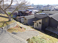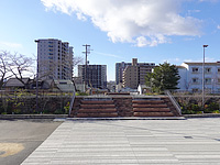 こちらは現場からさらに200m弱ほど南。地震断層観察館の脇から県道に出て、石段を上ると公園のような一角がある。
