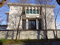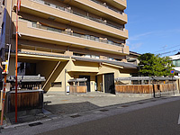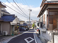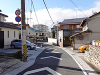 南東側を正面とするためか、道路に対して建物が完全に横向きに配置されている。これはわりと珍しい気がする。