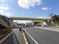 C: 西へ下ってみた。両側は堤防としての高さを維持。 R: さらに下って県道143号線。切通しとなっている。というわけで、ちょっと行っただけでも天井川らしさをたいへん実感できた。草津川が付け替えられたのは2002年。