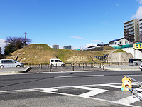 さすがに現在は周囲がそれなりに整備されているが、約6mの高低差は維持されている。県道に出て、辺りを歩いてみる。