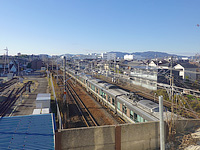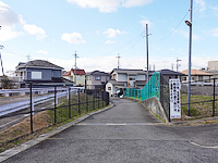 断層の現場は水鳥駅から150mほど南にある。まずはもったいぶって、線路沿いの遊歩道で断層展望広場から攻める。