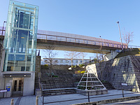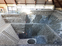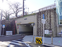 R: 左手から下段に出る。断層の高さ6m分は土を盛って坂道にしているので、この高さが本来のグラウンドレヴェルとなる。