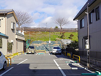 根尾西谷川を渡って坂を上るが、歩行者は階段でショートカットできるのだ。駐車場の脇を抜けると公園があり、