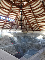 中に入ると四角錐の屋根と対称になるような穴が掘られており、見ると確かにだいたい半分のところで見事に色が違う。