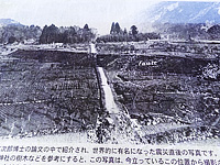 その端っこに四阿があり、濃尾地震直後の有名な写真が実際の景色と対応するように置かれ、見比べることができる。