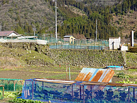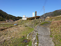 R: 神所城跡周辺はずっと動物の絶叫系の声がしており、帰りにニホンザルがいるのを見た。素早くて写真を撮れなかった。30分ほど歩くと目的地に到着。いちおう看板は出ているけど、国道から見てあまり目立つようになっていなかったので、