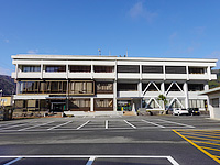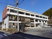 L: 根尾西谷川。 R: 流れる水は澄み切っていて美しい。最後に旧根尾村役場の本巣市役所根尾分庁舎を見ておく。見るからに典型的な役場建築で、1978年の竣工である。