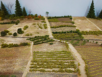 C: 石垣をクローズアップ。左が断層の上段で、下段である手前の畑との高低差を石垣で埋めて坂道を整備したことがわかる。